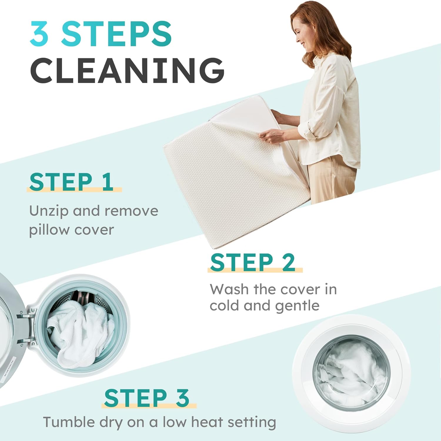 ✅ Enhanced Design Features: The breathable, removable, and machine-washable cover allows for easy cleaning and promotes airflow, ensuring your pillow stays fresh and comfortable. Built-in pockets provide convenient storage for your essentials, and the portable handle makes it easy to move the pillow wherever you need it.