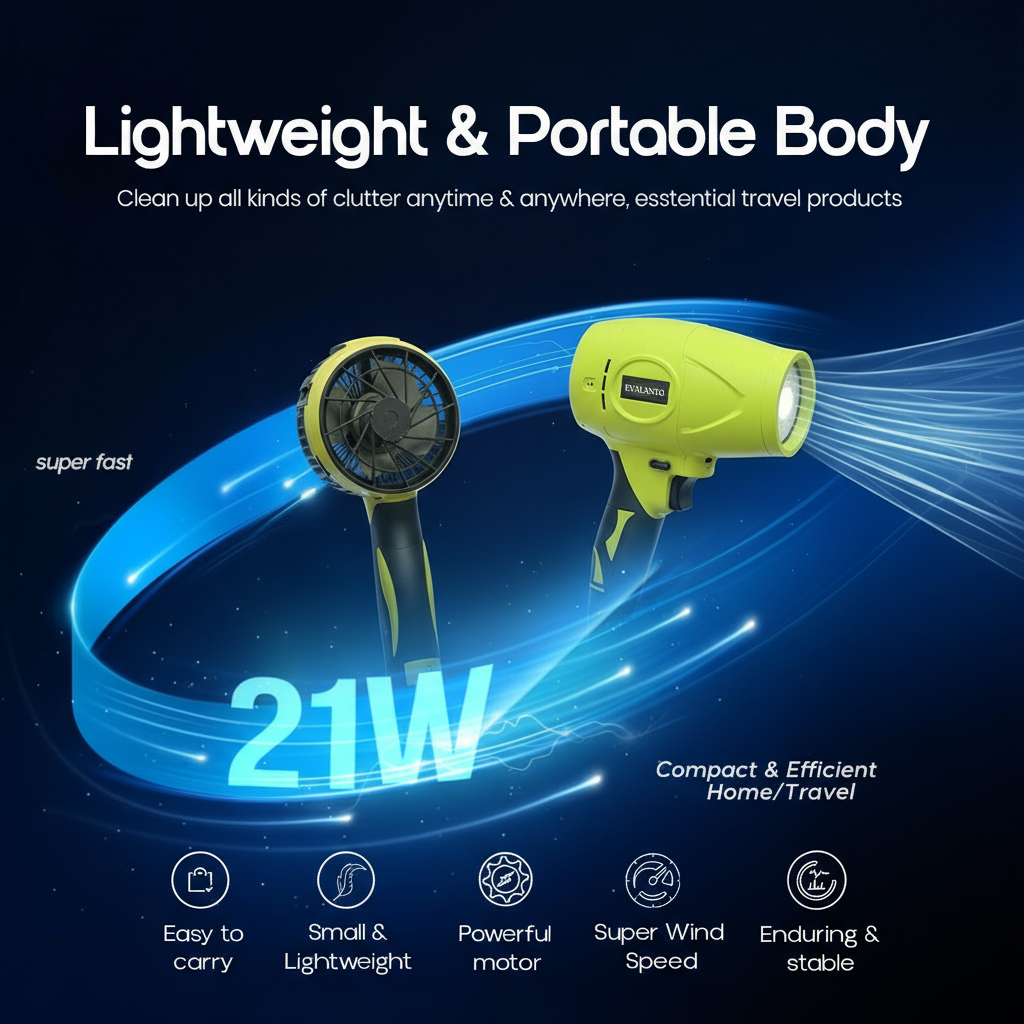✔ Débit d'air puissant (320 km/h)