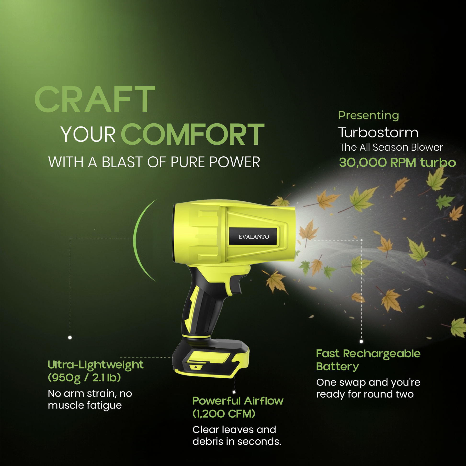 Absolument. Malgré sa taille compacte, TurboStorm™ produit un flux d'air concentré à haute pression, suffisamment puissant pour éliminer les feuilles, la saleté et même les débris humides des patios, garages ou terrasses. Il est conçu pour des résultats concrets, et pas seulement pour éliminer la poussière légère.