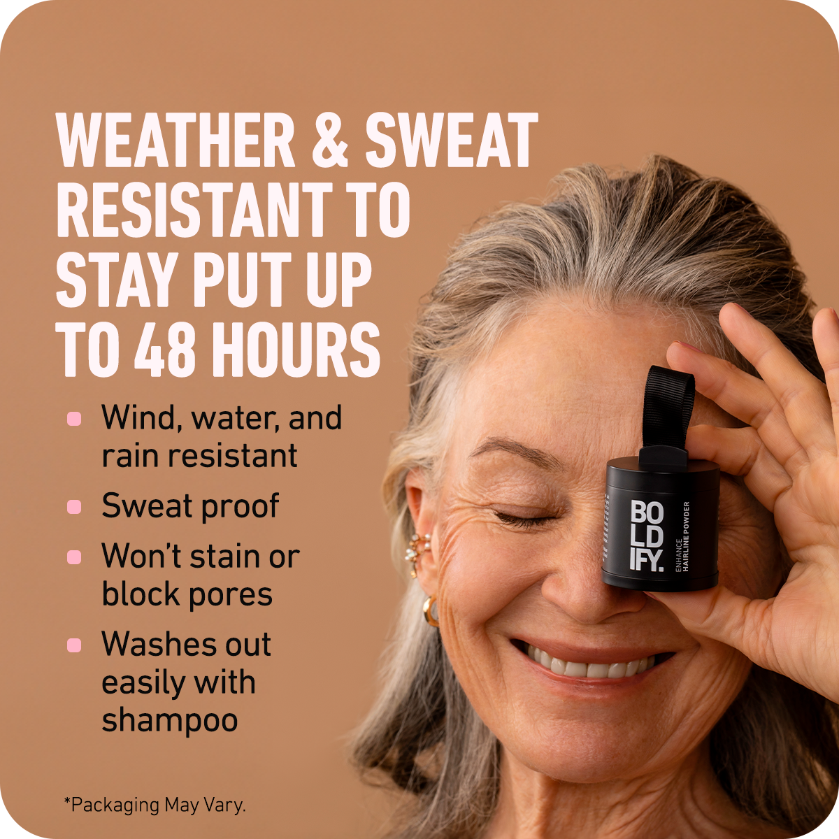 hairline, and root regrowth in seconds. This quick-acting powder is water-resistant and infused with conditioning squalane for an undetectable natural finish. The convenient packaging features a built-in mirror and precise applicator puff, making it easy to enhance what you want, when you want - without the mess. Now available in-store at Walmart!