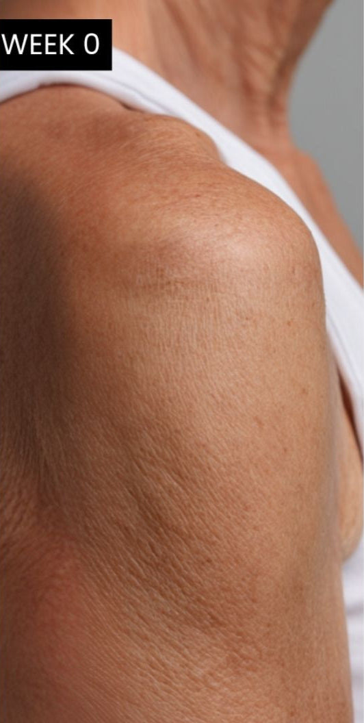 Step 2: Apply the Oil - Massage 2–3 drops onto arms, thighs, belly, or any dry, sagging areas.