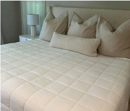 Q-max measures how cool a fabric feels when it touches your skin—the higher the score, the cooler the sensation. Our comforter exceeds the industry standard with a Q-max score of 0.4+, so you'll notice the difference the moment you crawl in.