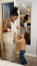 The fabric is incredibly soft, lightweight, and breathable—perfect for keeping cool during pregnancy. It’s also super stretchy, providing just the right amount of give to accommodate your growing bump without feeling restrictive.